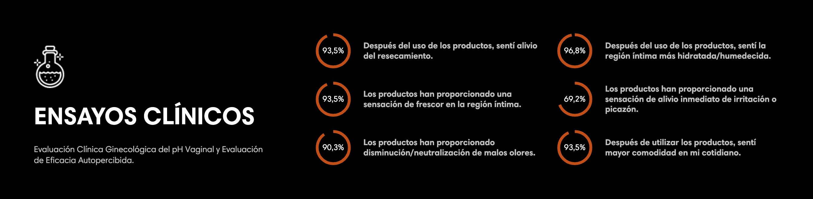 La flora vaginal está compuesta por una población de microorganismos. Cuando se encuentra en equilibrio, las bacterias “buenas” (Lactobacilos principalmente) predominan sobre las “malas”. Esto genera que el pH vaginal se mantenga entre 3,8 y 4,5. Sin embargo, pueden ocurrir alteraciones en este equilibrio que provocan que las bacterias malas proliferen, generando una infección vulvovaginal. Cuando hay infecciones vulvovaginales, el pH puede cambiar, llegando hasta 6,0 o más. Por ello es importante mantener el pH adecuado para evitar el sobrecrecimiento de bacterias patógenas. Nuestros productos están específicamente formulados con un pH aproximado de 4,5 para mantener el equilibrio de la microbiota vaginal.