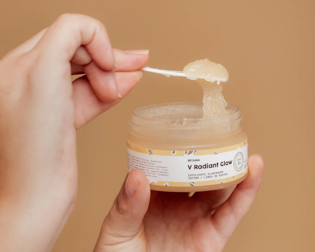 Biolube V Radiant Glow es un exfoliante aclarante e iluminador que ayuda a remover las células muertas de manera suave y respetuosa con la delicada piel de la zona íntima y línea de bikini. Ayuda a prevenir la aparición de vellos encarnados, reducir la pigmentación y unificar el tono de la piel, dejándola más clara y radiante.